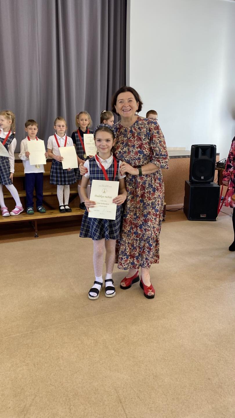 Fizinio lavinimo mokytoja Gintarė Poškevičienė taip pat įteikė medalius už sportinius pasiekimus.