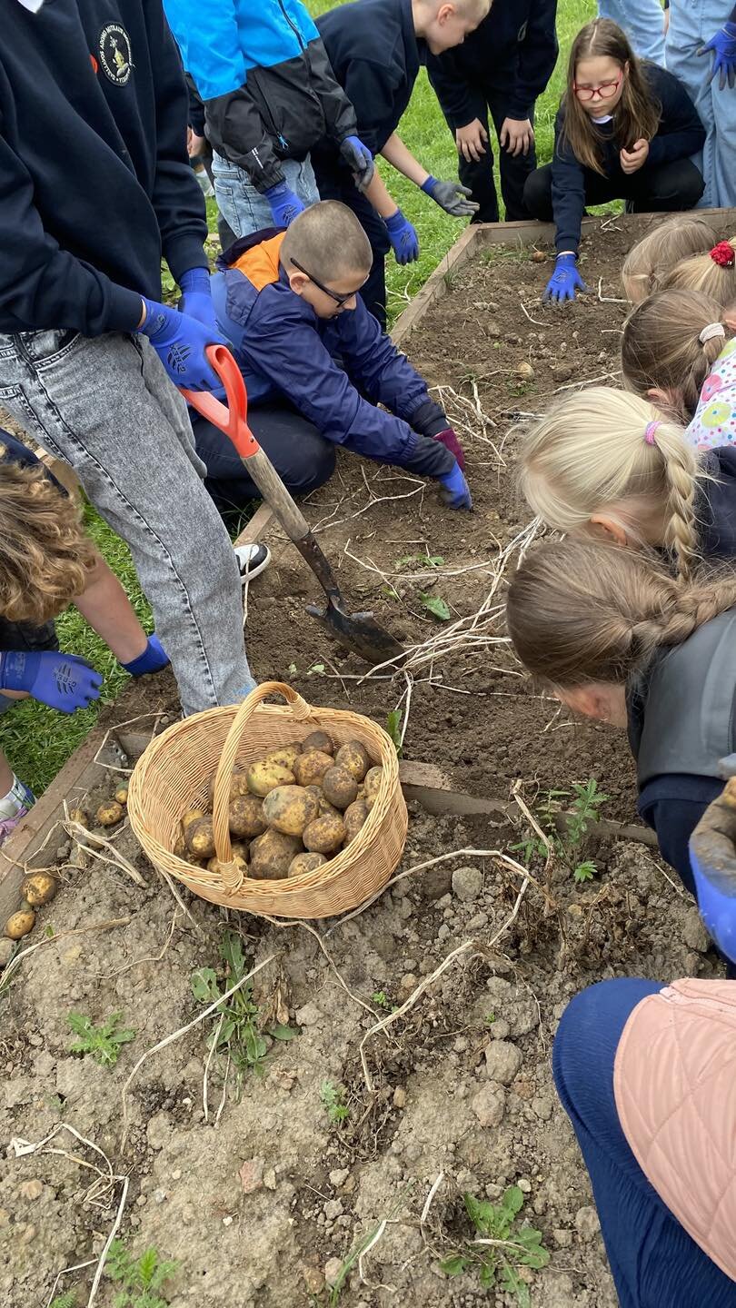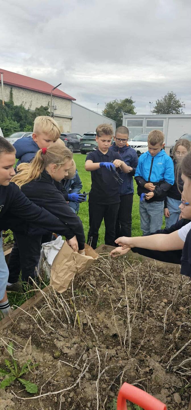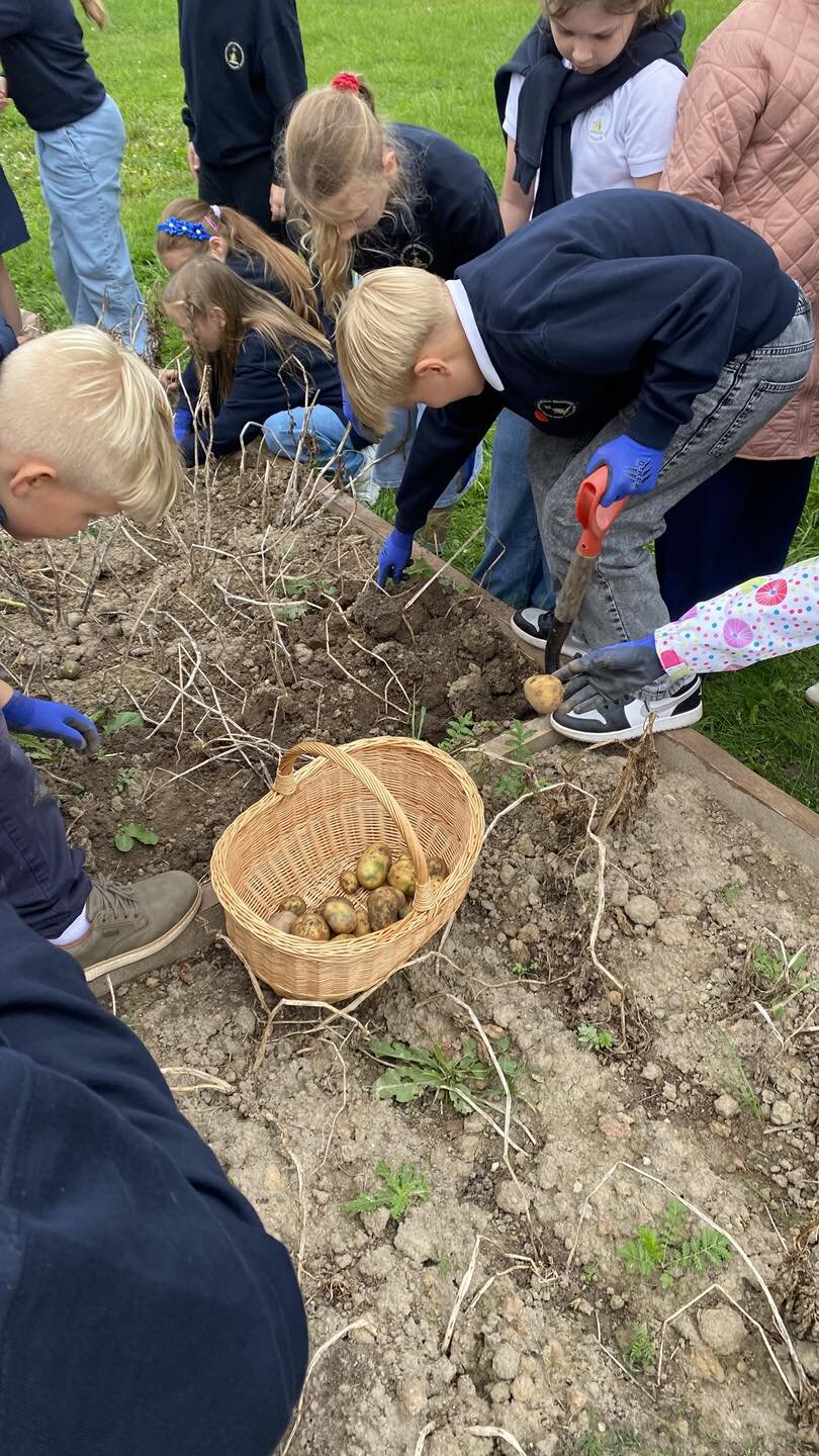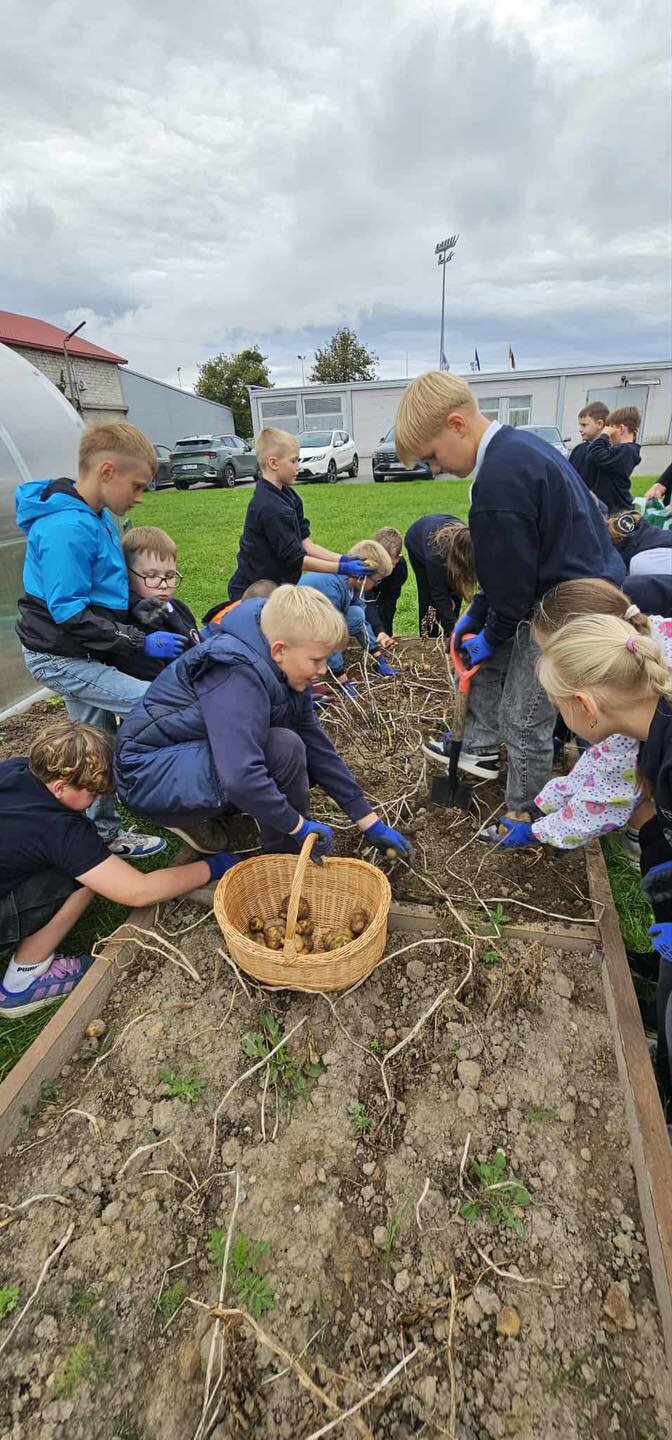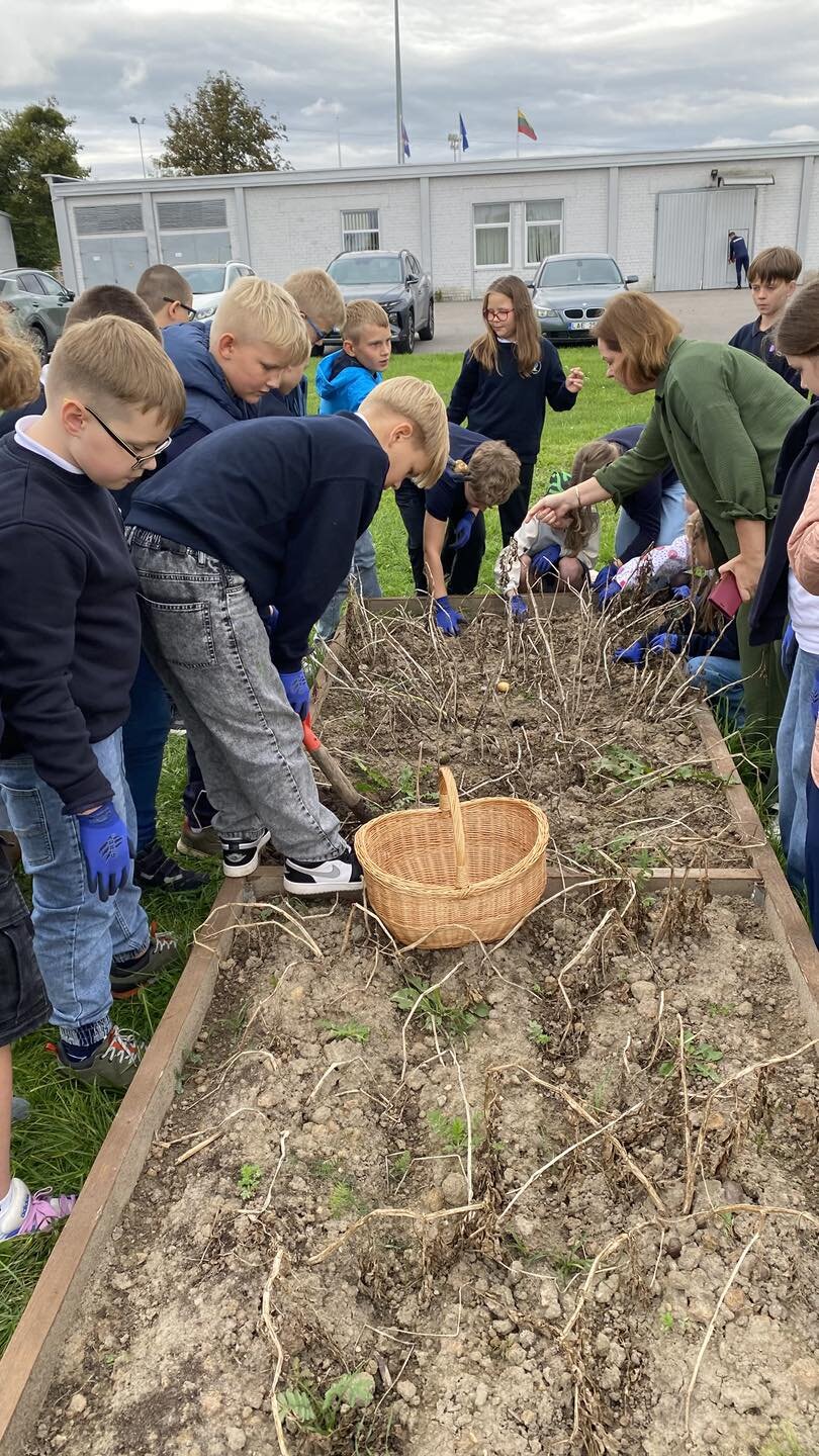 Pavasarį, būdami trečiokais, mokiniai mokėsi, kaip sodinti bulves, o dabar, būdami ketvirtokais, jie įgijo žinių apie bulviakasį. Po derliaus nuėmimo mokiniai paruošė dirvą kitų metų sodinimui. Ši patyriminė veikla sukėlė daug teigiamų emocijų mokiniams.