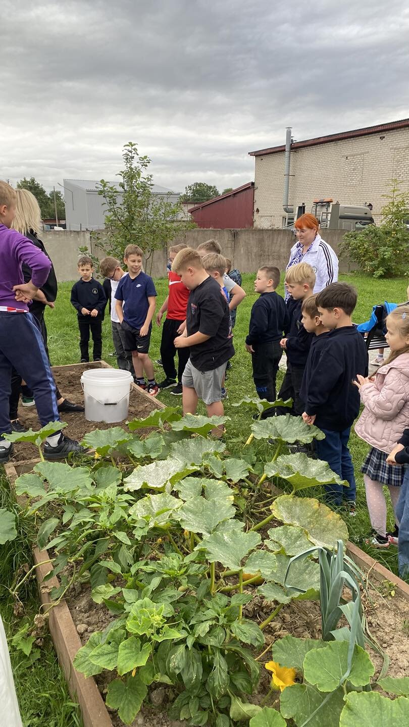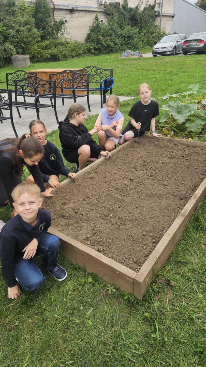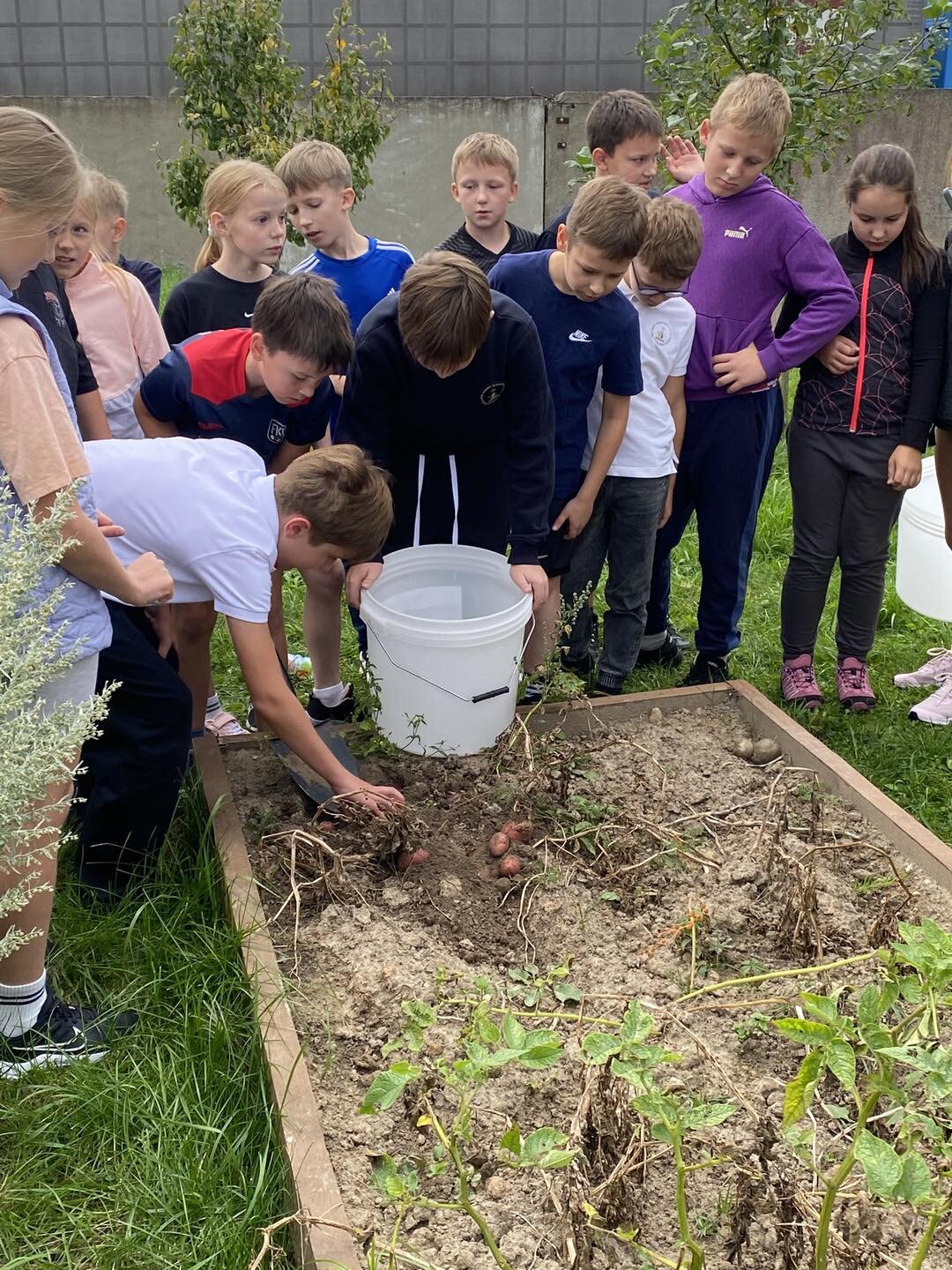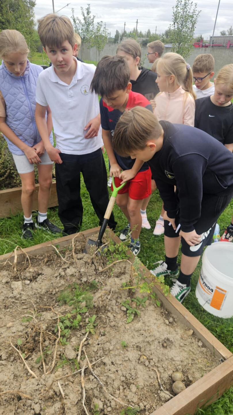 Pavasarį, būdami trečiokais, mokiniai mokėsi, kaip sodinti bulves, o dabar, būdami ketvirtokais, jie įgijo žinių apie bulviakasį. Po derliaus nuėmimo mokiniai paruošė dirvą kitų metų sodinimui. Ši patyriminė veikla sukėlė daug teigiamų emocijų mokiniams.