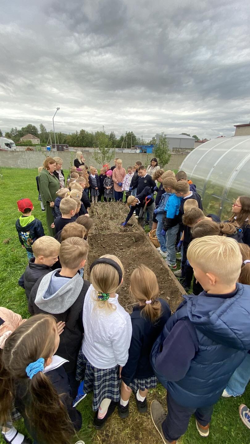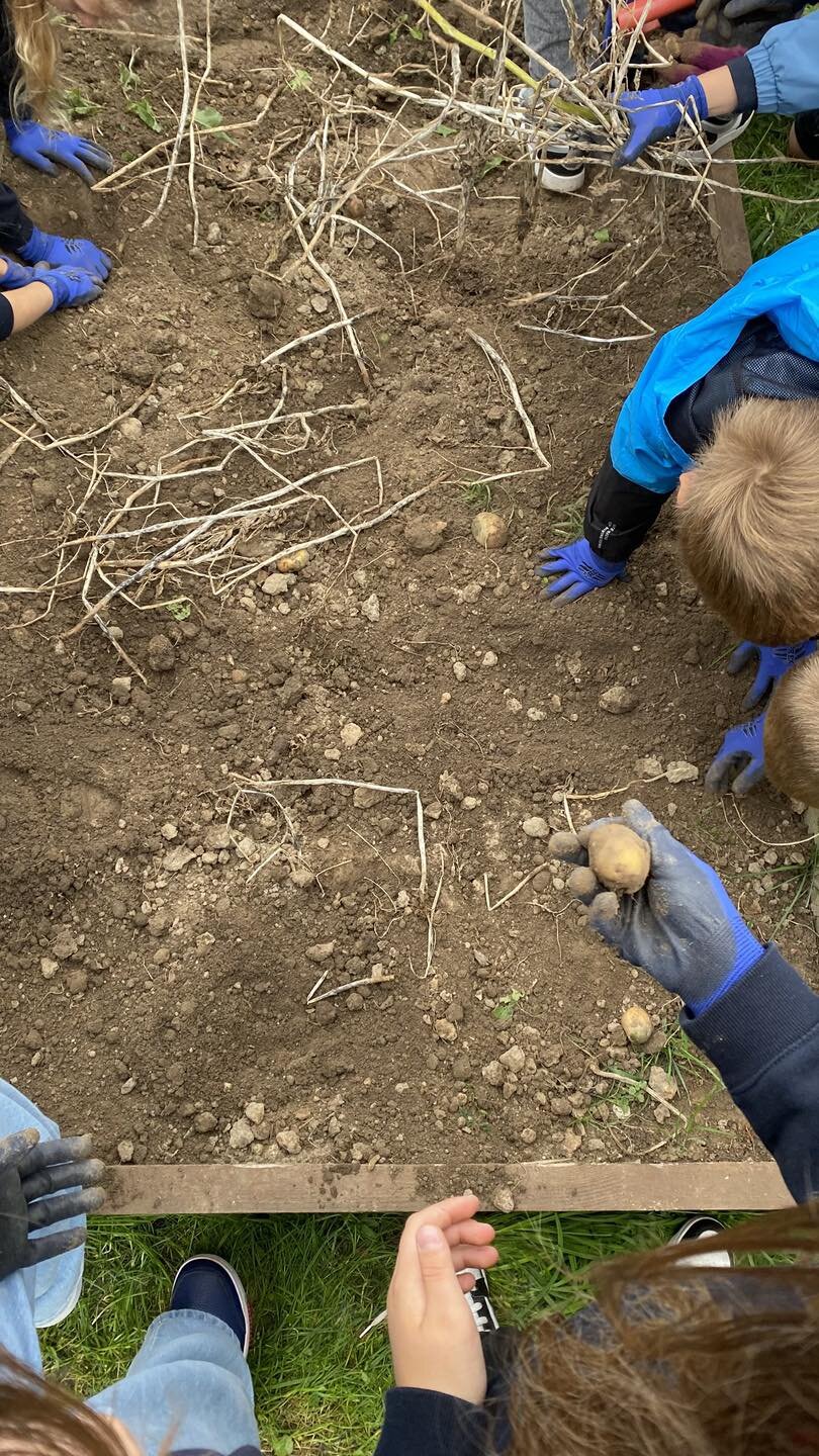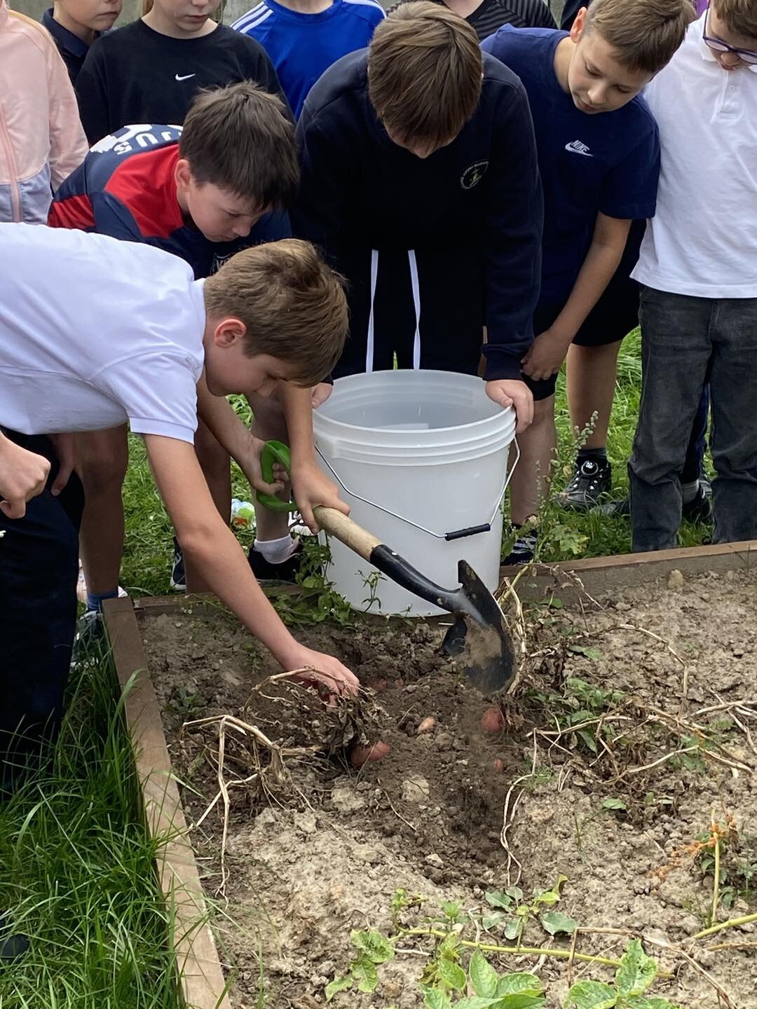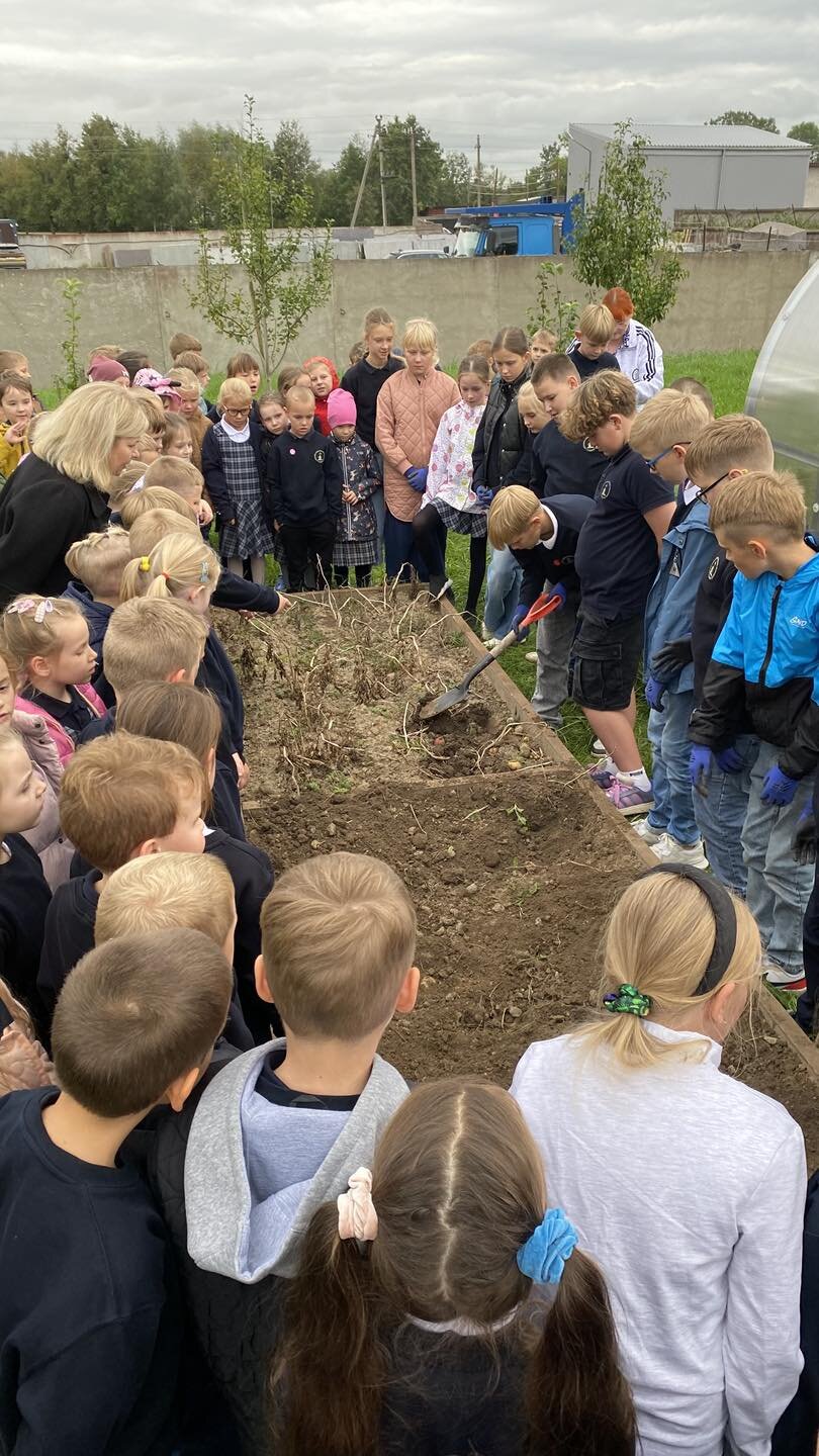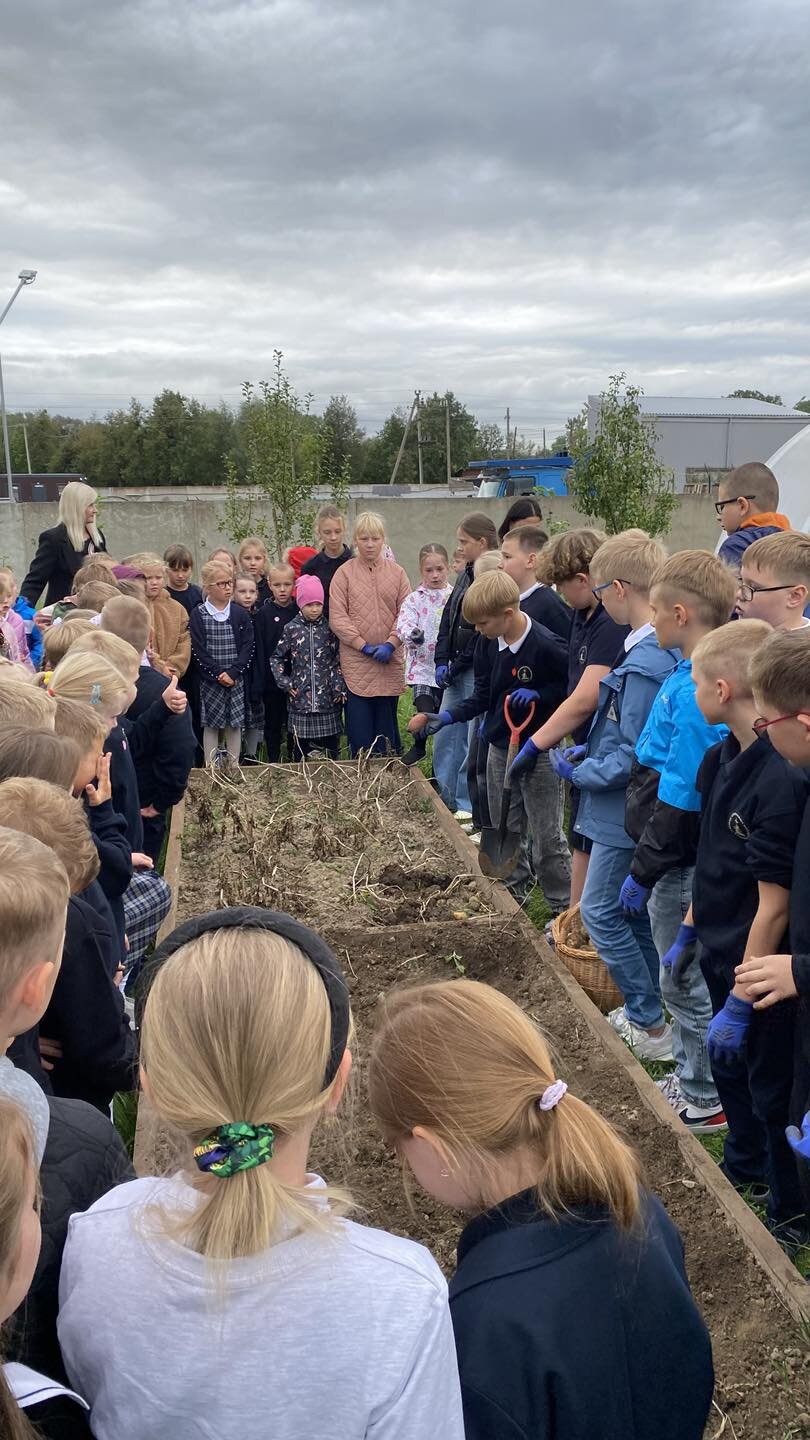 Pavasarį, būdami trečiokais, mokiniai mokėsi, kaip sodinti bulves, o dabar, būdami ketvirtokais, jie įgijo žinių apie bulviakasį. Po derliaus nuėmimo mokiniai paruošė dirvą kitų metų sodinimui. Ši patyriminė veikla sukėlė daug teigiamų emocijų mokiniams.