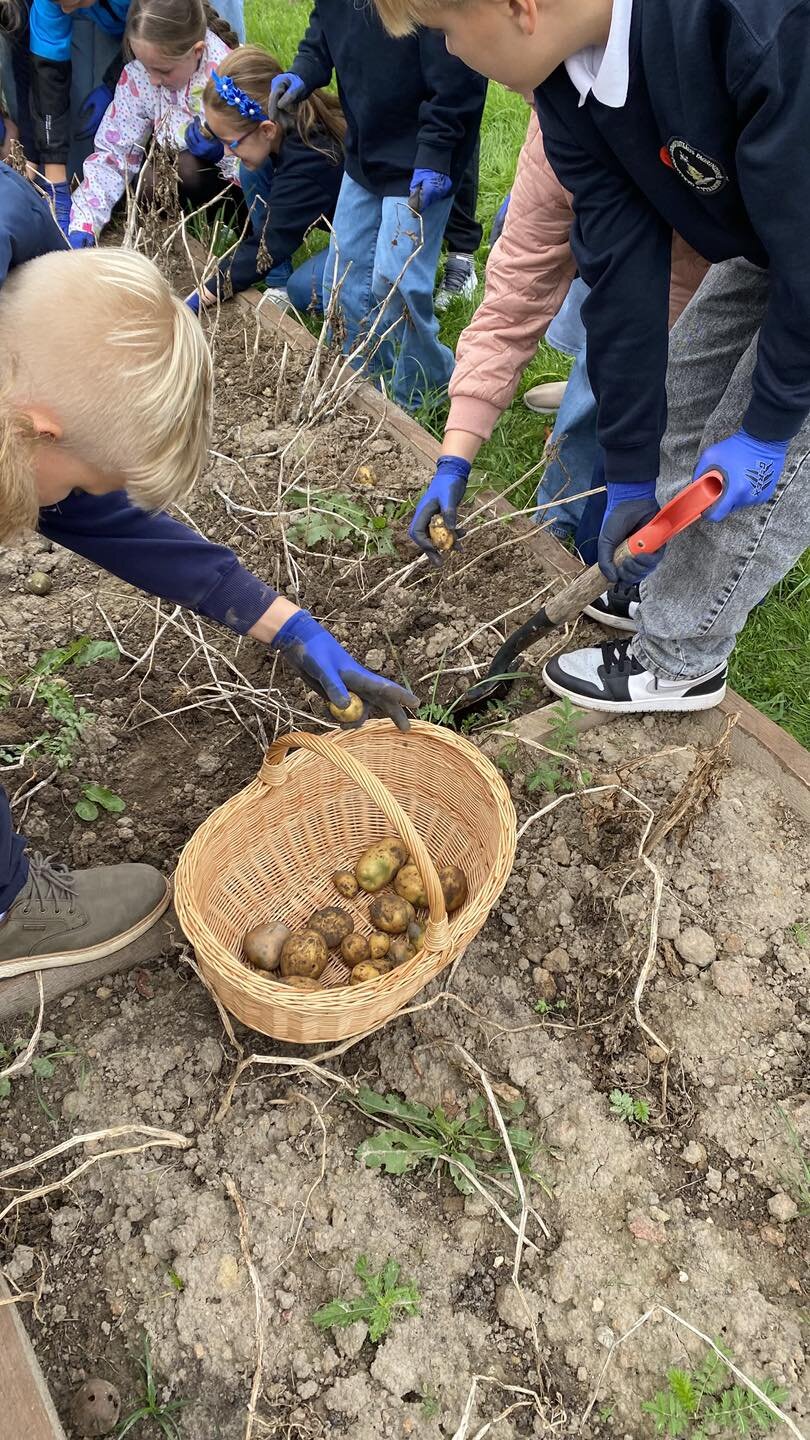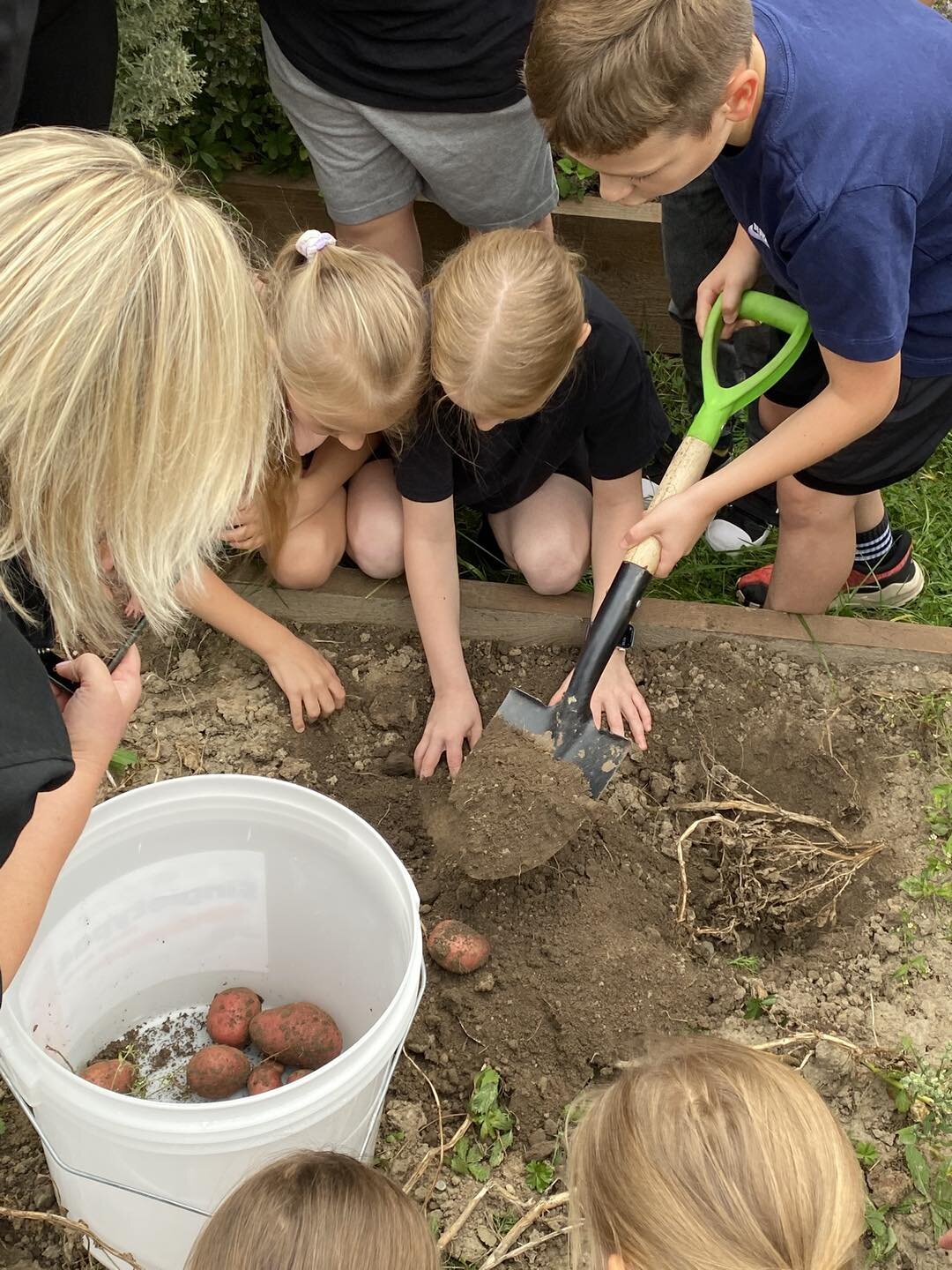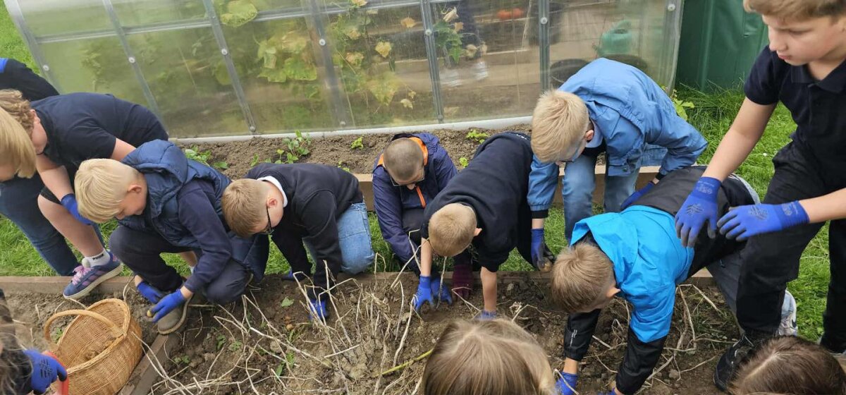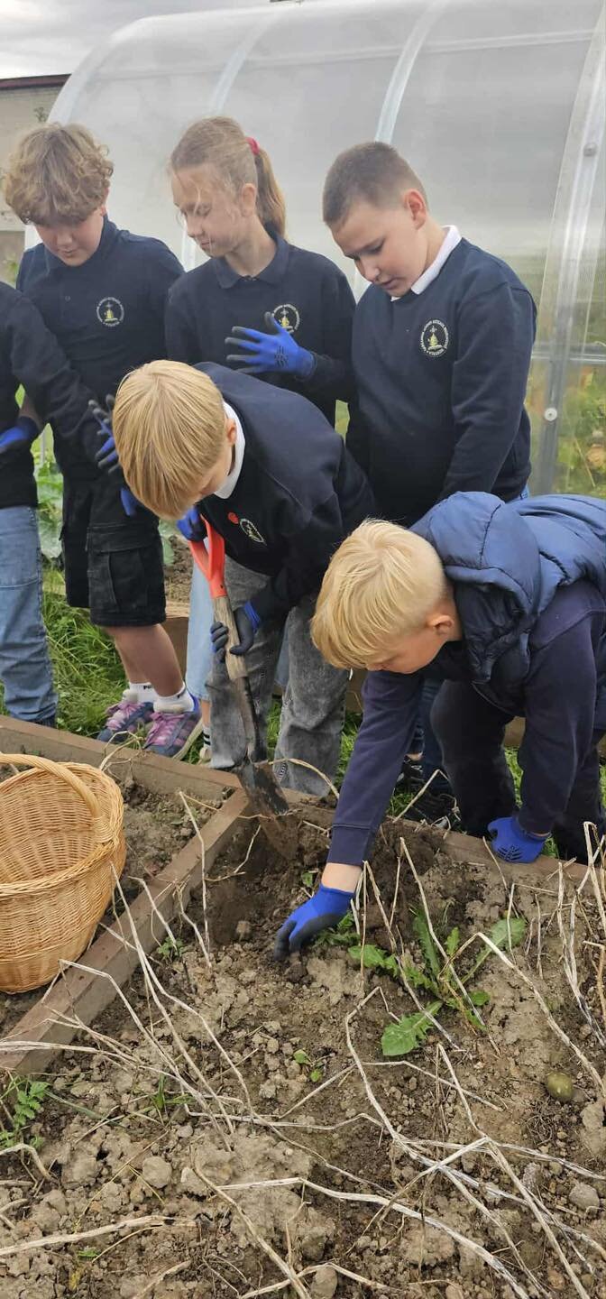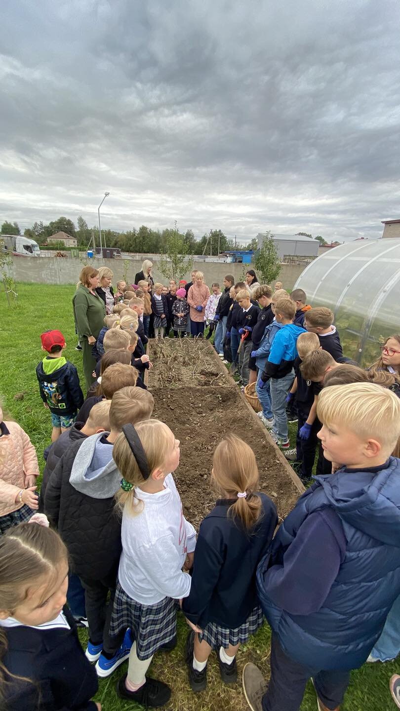 Pavasarį, būdami trečiokais, mokiniai mokėsi, kaip sodinti bulves, o dabar, būdami ketvirtokais, jie įgijo žinių apie bulviakasį. Po derliaus nuėmimo mokiniai paruošė dirvą kitų metų sodinimui. Ši patyriminė veikla sukėlė daug teigiamų emocijų mokiniams.