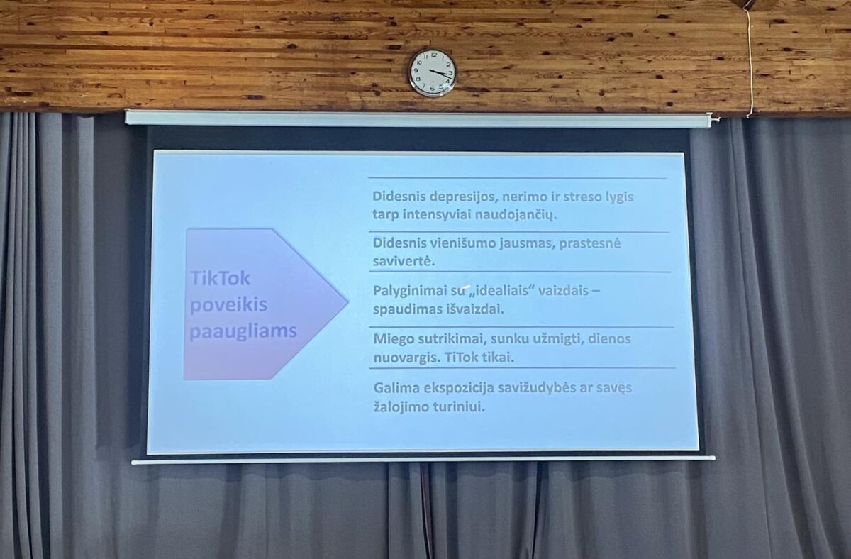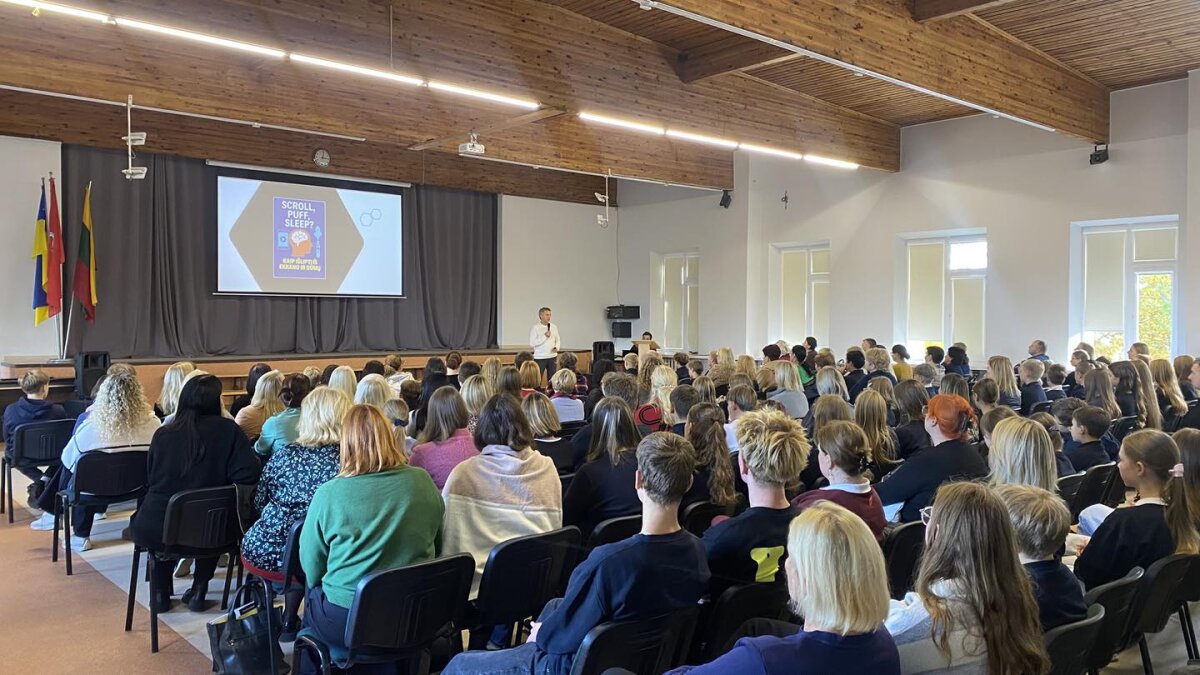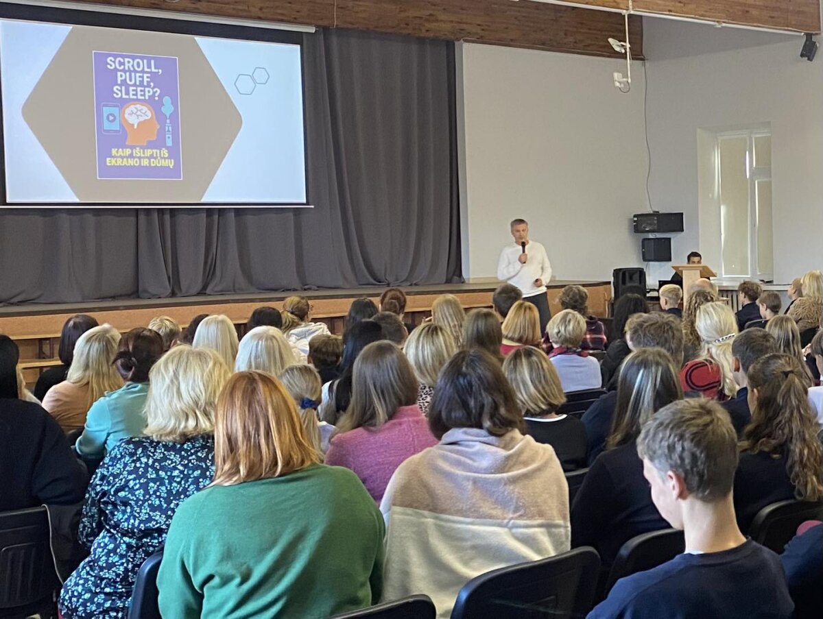 Spalio 13 dieną mūsų mokykloje lankėsi profesorius, Kauno vaikų ligų klinikos vadovas Rimantas Kėvalas, kurio pasiklausyti susirinko mokiniai, jų tėveliai, mokytojai ir mokyklos darbuotojai. Profesorius pasidalijo itin svarbiomis ir aktualiomis įžvalgomis apie šiuolaikinio žmogaus sveikatą bei emocinę gerovę.
