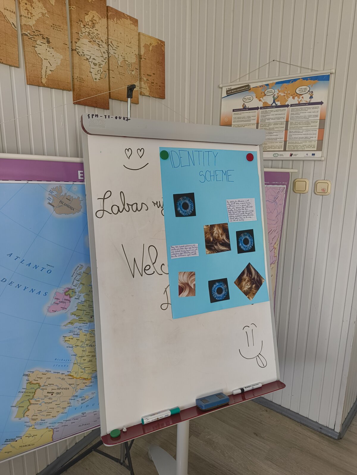 🔹 Kūrybinės dirbtuvės: Mokiniai grupėse kūrė plakatus, kuriuose analizavo, kas yra tapatybė, iš ko ji susideda, ir diskutavo – ar mus sukuria aplinka, ar mes patys?