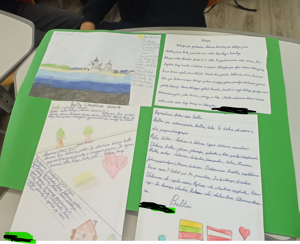 Šį rudenį mūsų mokykla dalyvavo tarptautiniame projekte ,,Baltų literatūros savaitė 2025“, kurį organizavo Vytauto Didžiojo universitetas. Mokytojai I. Dolotovaitė, V. Kalanavičiūtė, J. Dranginienė, V. Pūrienė I. Smilgytė, N. Fokienė, A. Sinkevičienė ir I. Valutkevičienė pakvietė 5-9 klasių mokinius dalyvauti įvairiose projekto veiklose: papasakoti apie gražiausias Lietuvos ir Latvijos vietoves, sužinoti, kokiomis progomis keliamos valstybinės vėliavos, žiūrėti animacinį filmuką „Kiosk“ ir aptarti jame vaizduojamą vienišumo ir savirealizacijos problemą, peržiūrėjus 2024 m. latvių kūrėjų animacinio filmo „Potvynis“ epizodus, skaitmeniniame Latvių-lietuvių kalbų žodyne surasti visų veikėjų - gyvūnų pavadinimus latviškai, susipažinti su latvių autorės A. Melece paveikslėlių knyga, kurti pristatymus apie mūsų mokyklą, Garliavos miestelio bokštus, iliustruoti Rygos miesto bokštus, išmoktas dainas dainuoti Bergių muzikos ir meno pagrindinėje mokykloje (Latvijoje). Veiklos skatino mokinius pažinti kaimyninės ir savos tautos kūrybą bei stiprinti kultūrinį bendrumo jausmą.