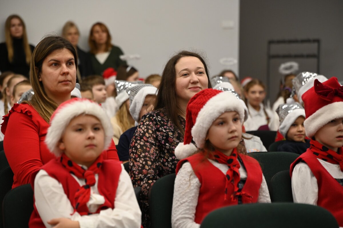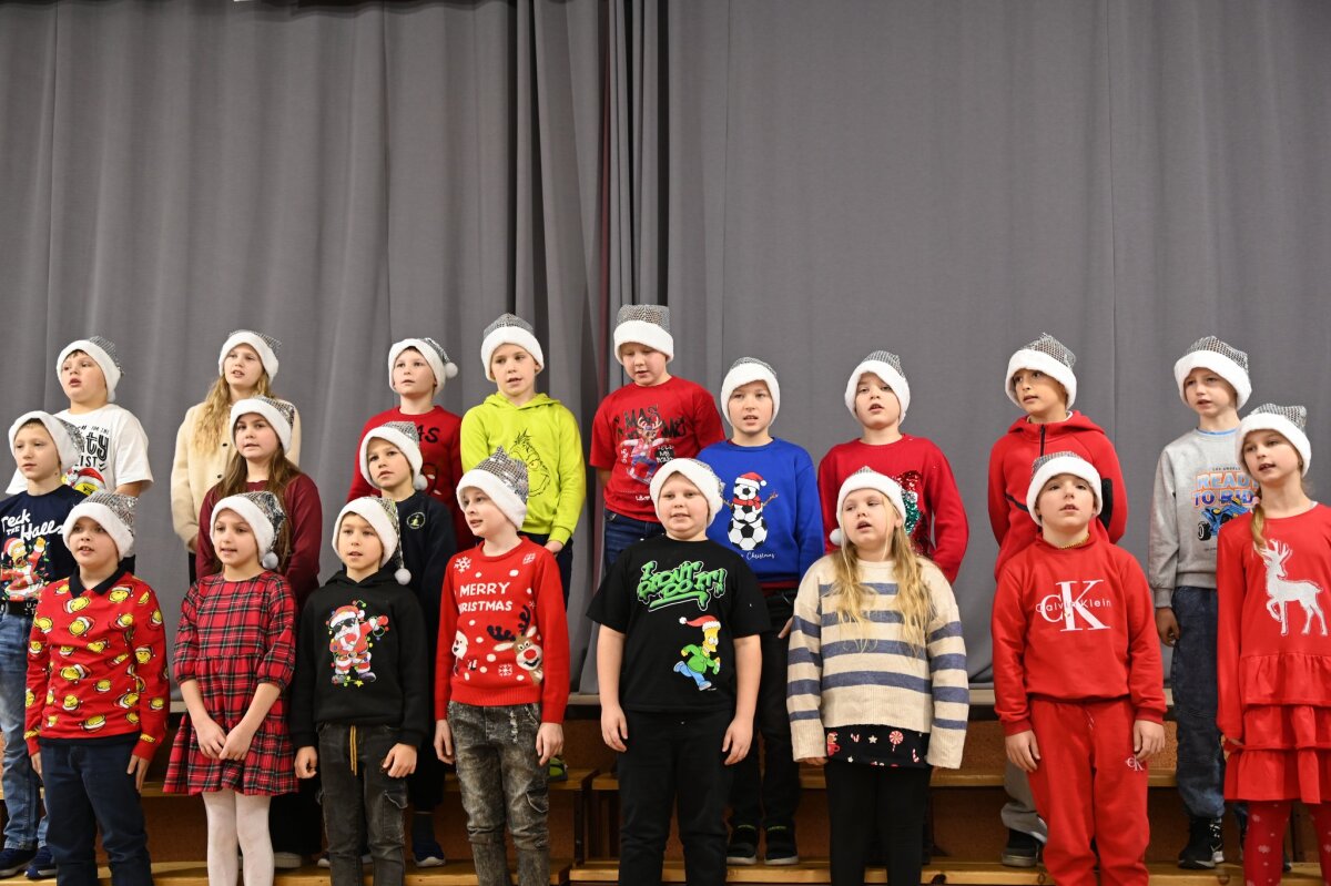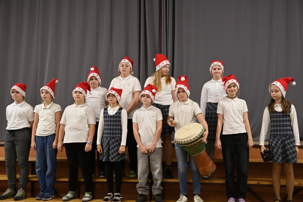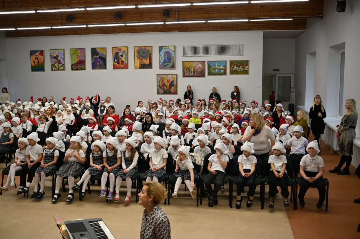 Gruodžio 22-osios rytas prasidėjo nuostabiu 1–4 klasių Kalėdinių giesmių festivaliu. Nors už lango sniego dar nematyti, šventinė nuotaika jau tvyroja mokykloje – šiltos ir gražios giesmės, kurias su šypsenomis giedojo nuostabiai pasipuošę mokinukai, pripildė visų širdis džiaugsmo. Nuoširdžiai dėkojame muzikos mokytojai Auksei Smilgytei už mokinių pasiruošimą ir ypatingos Kalėdinės atmosferos kūrimą mūsų mokykloje.