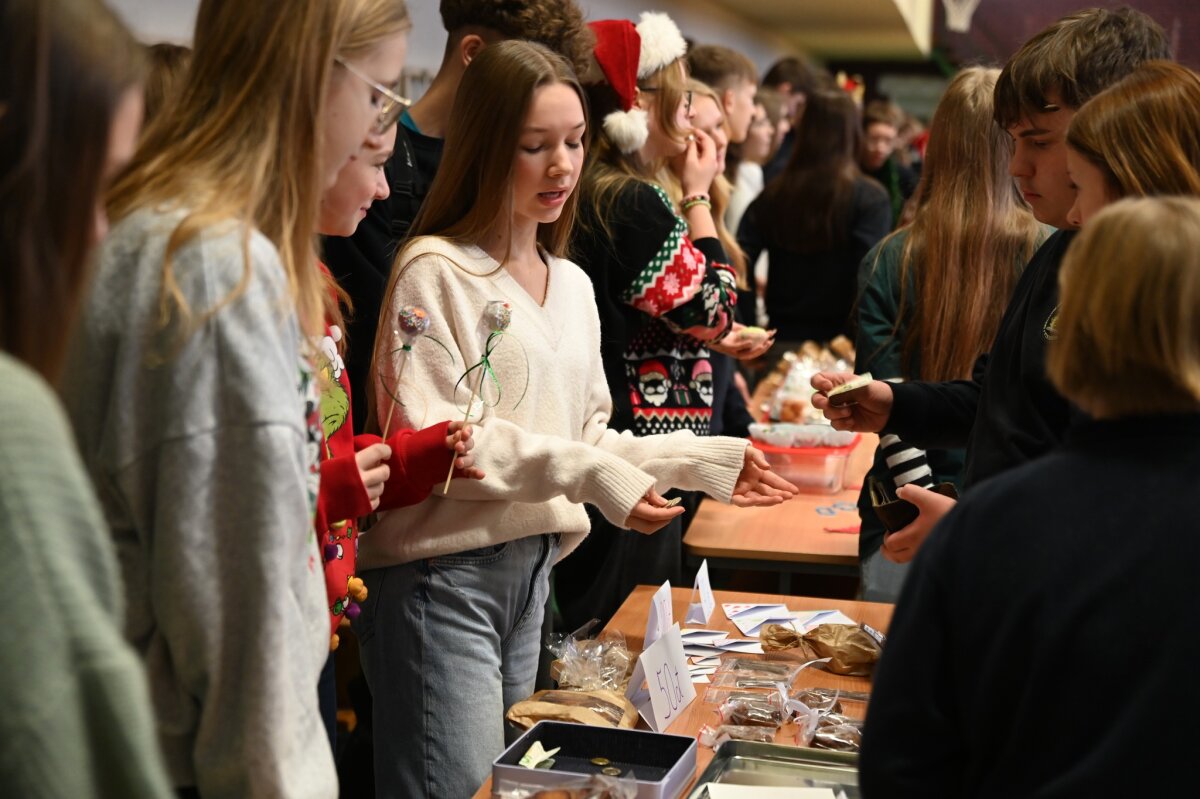 Mokykloje vyko kasmetinė tradicinė „Kalėdinė labdaros mugė“. Jos metu 1–10 klasių mokiniai su džiaugsmu prekiavo savo gamybos skanėstais ir rankdarbiais. Dėkojame visiems, kurie kūrė, kepė, pardavinėjo ir palaikė šią gražią iniciatyvą. Visos mugės metu surinktos lėšos bus skirtos mūsų mokyklos mokiniams, kuriems reikalinga pagalba įsigyjant mokyklines prekes, uniformą ar vykstant į išvykas. Šv. Kalėdos – tai metas, kai širdys tampa atviresnės, o geri darbai įgauna ypatingą prasmę. Kartu kuriame bendruomenę, kurioje svarbus kiekvienas!