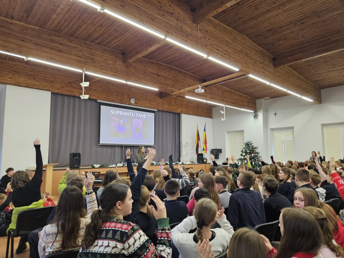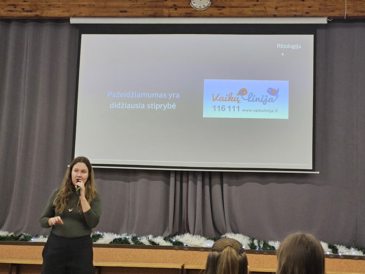 Gruodžio 17 d. mokykloje vyko paskaita „Ne saldainiai, o žinutės: kaip išmokyti vaikus atpažinti viliojimo taktikas internete?“