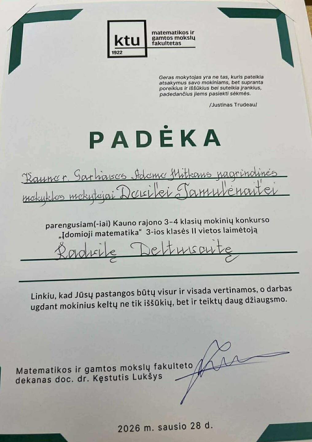 Padėkos ir sveikinimai mokiniams