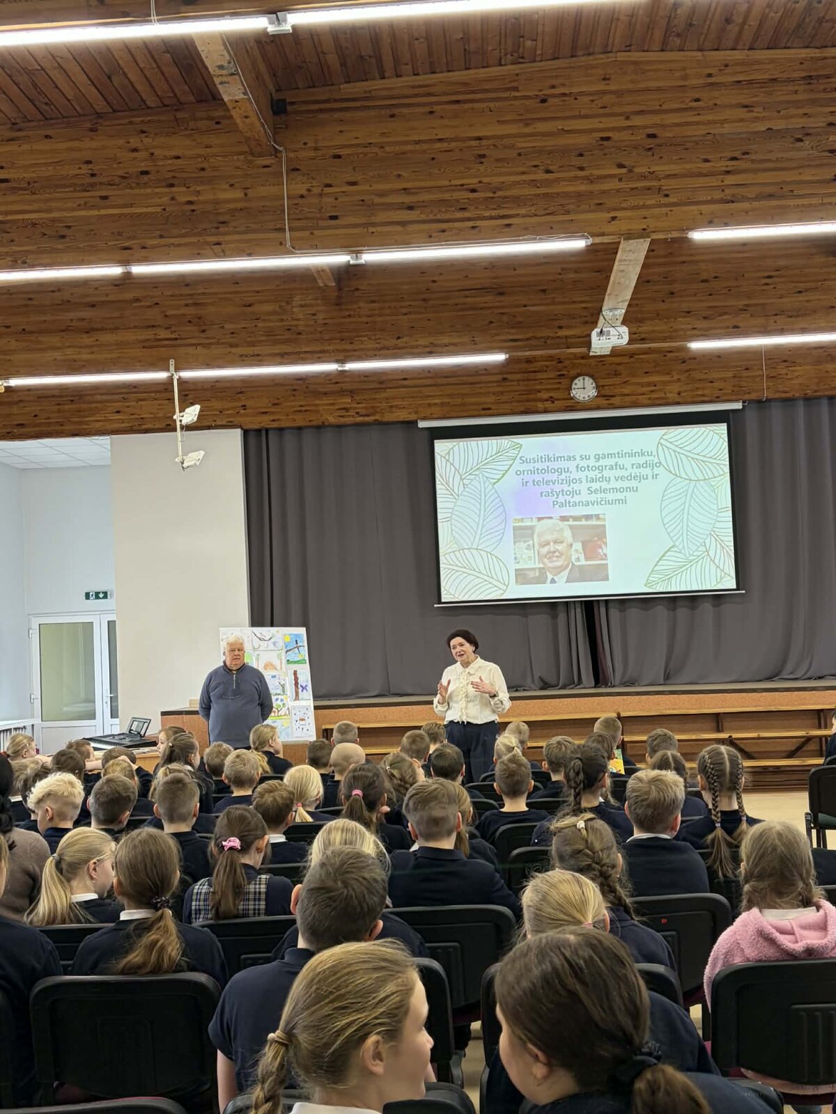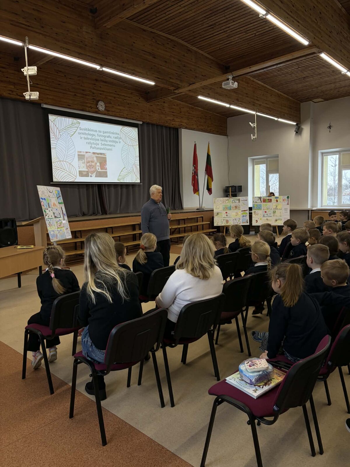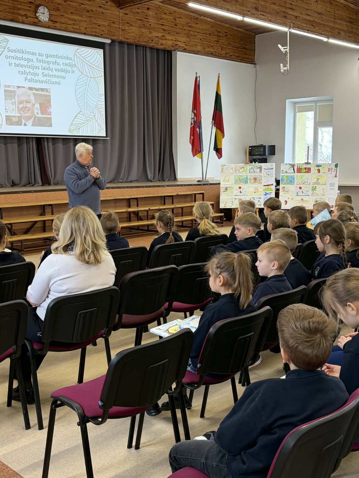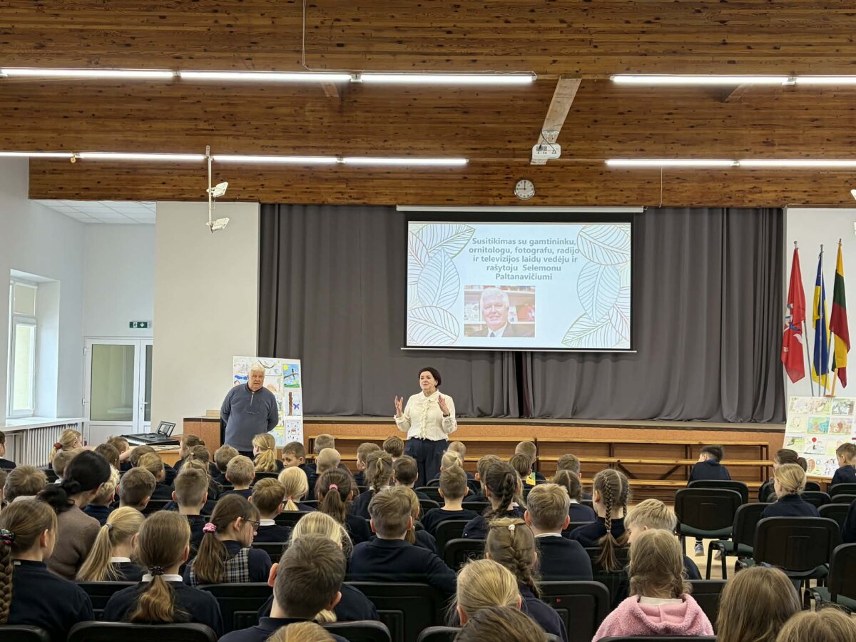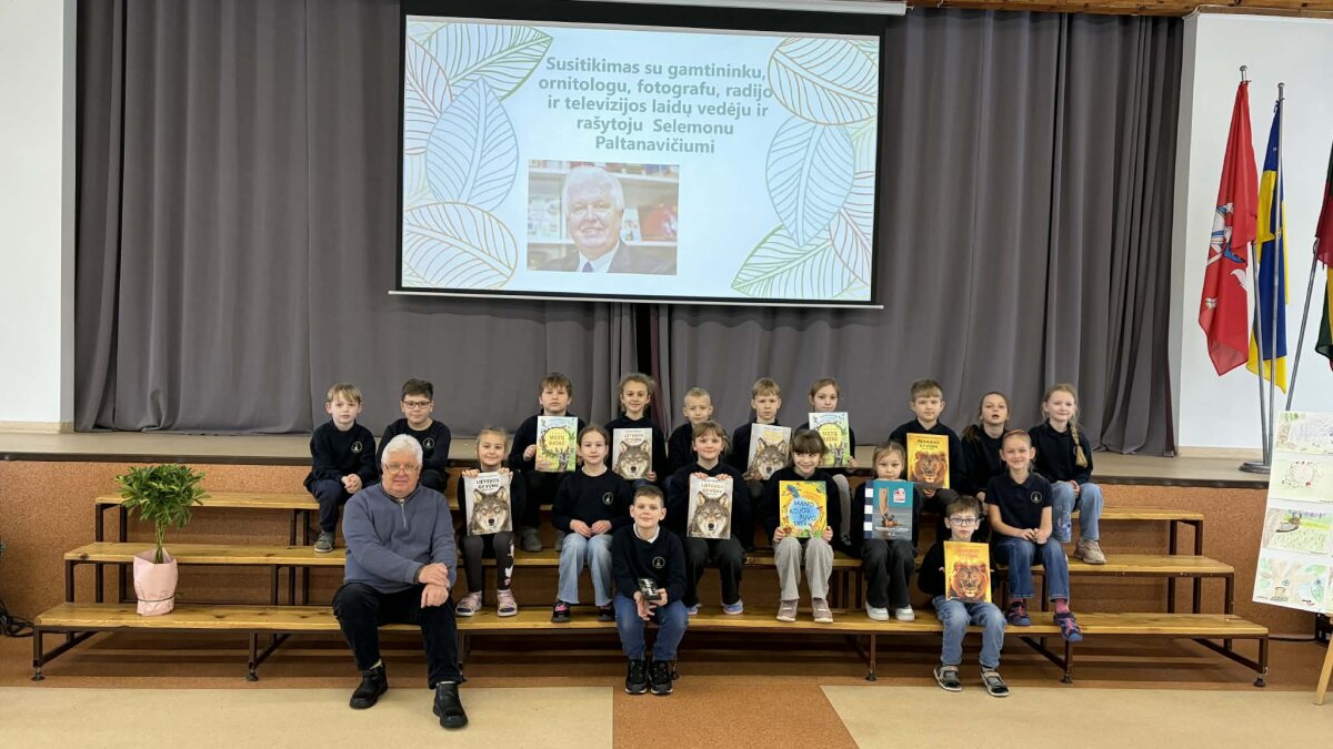 Vasario 24-osios rytas 1–3 klasių mokiniams prasidėjo ypatingai – susitikimu su rašytoju, gamtininku, fotografu ir laidų vedėju Selemonu Paltanavičiumi.