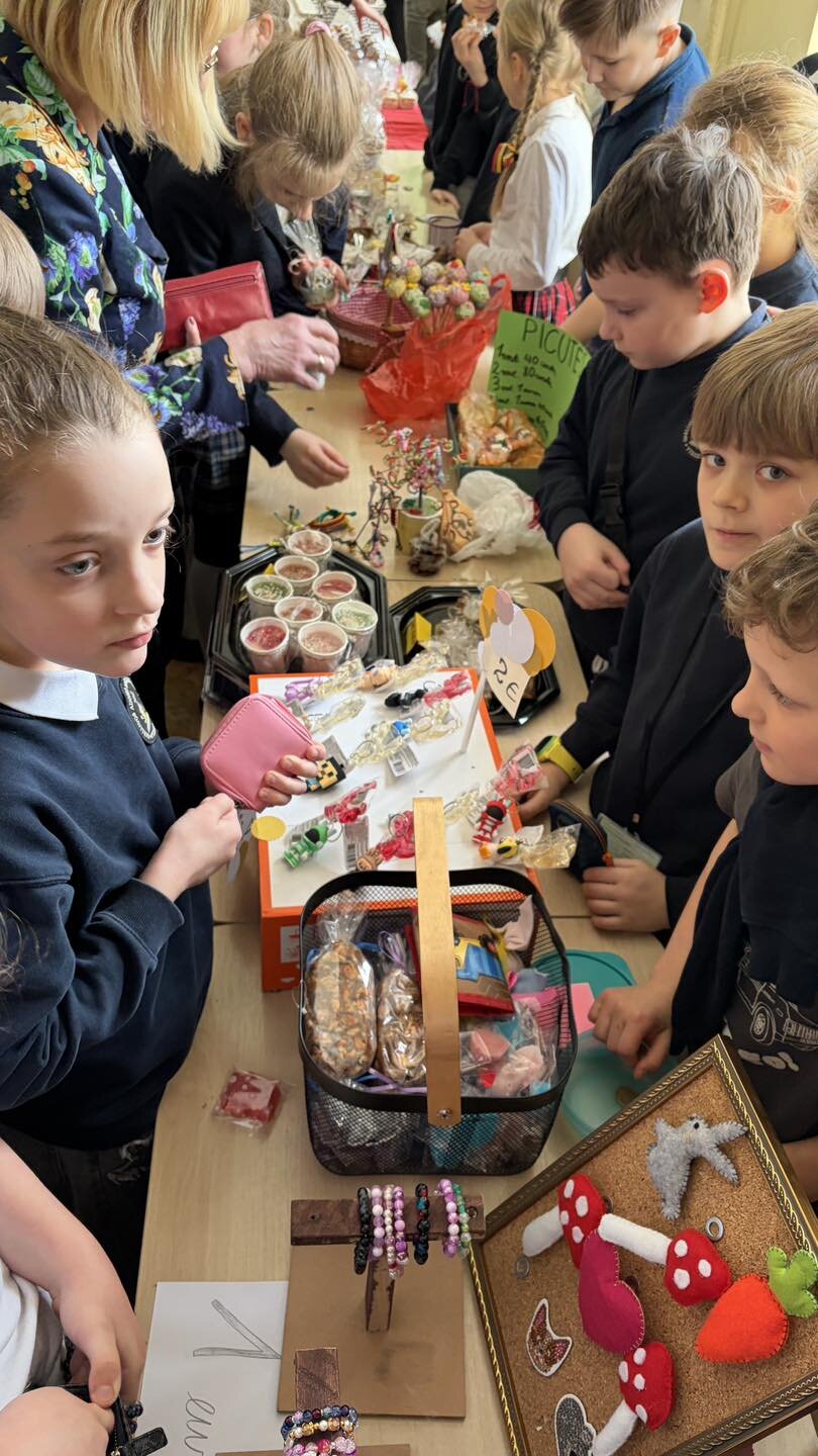 Pavasarį mokykloje pasitikome su linksma ir spalvinga Kaziuko muge! 1–4 klasių mokiniai kruopščiai ruošėsi šiai šventei – kepė gardžius skanėstus, gamino įvairius rankdarbius ir su džiaugsmu pardavinėjo.