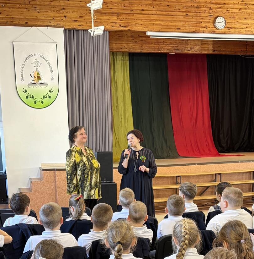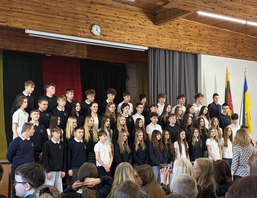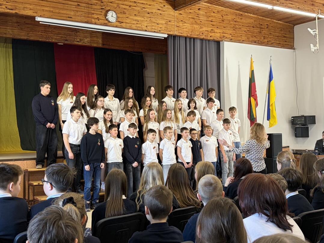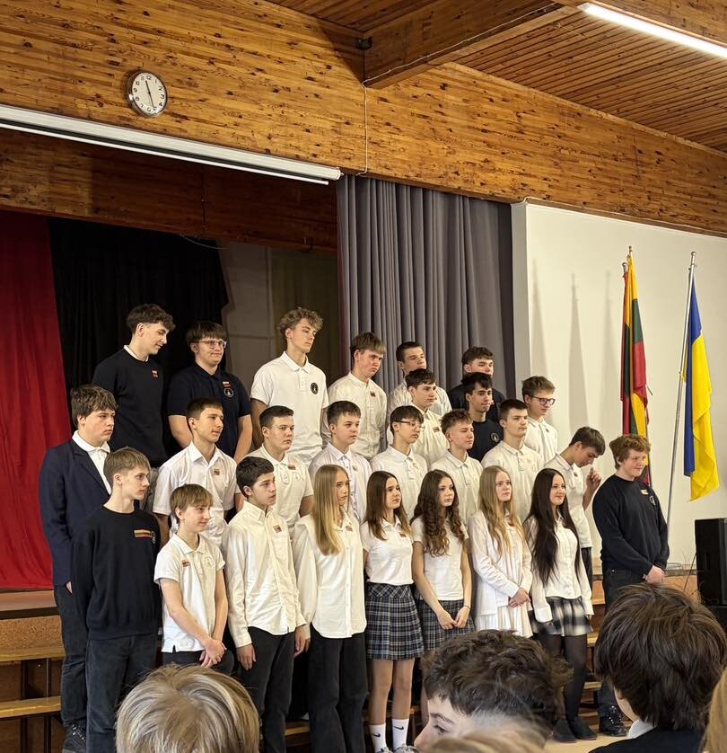 Vyresniųjų klasių mokiniai taip pat atliko dainas, skirtas Lietuvos nepriklausomybės atkūrimo dienai. Šventė buvo ypatinga ir tuo, kad sulaukėme viešnios – Adomo Mitkaus anūkės Ramunės Malinauskaitės. Būdama Adomo Mitkaus vardo premijos steigėja, ji tradiciškai įteikė premiją už puikius akademinius pasiekimus ir aktyvią veiklą.