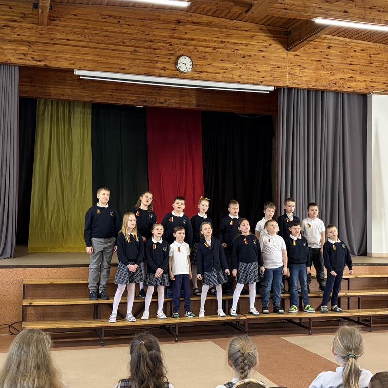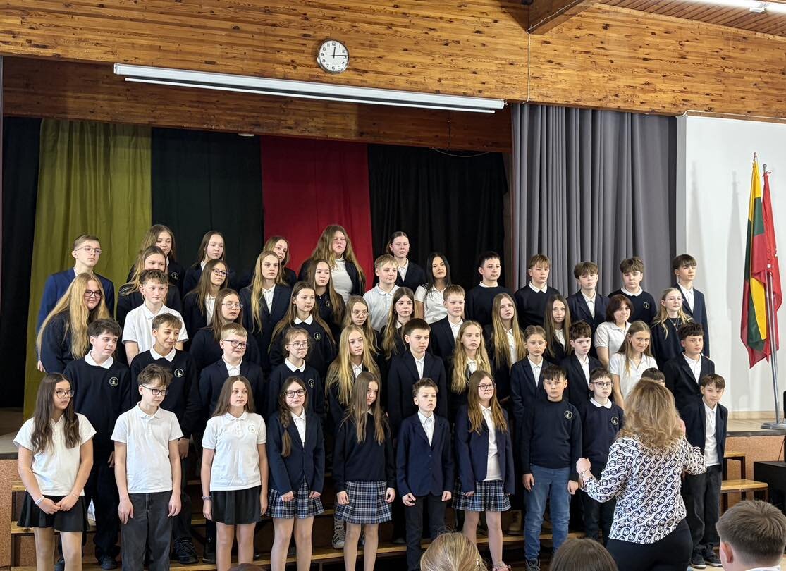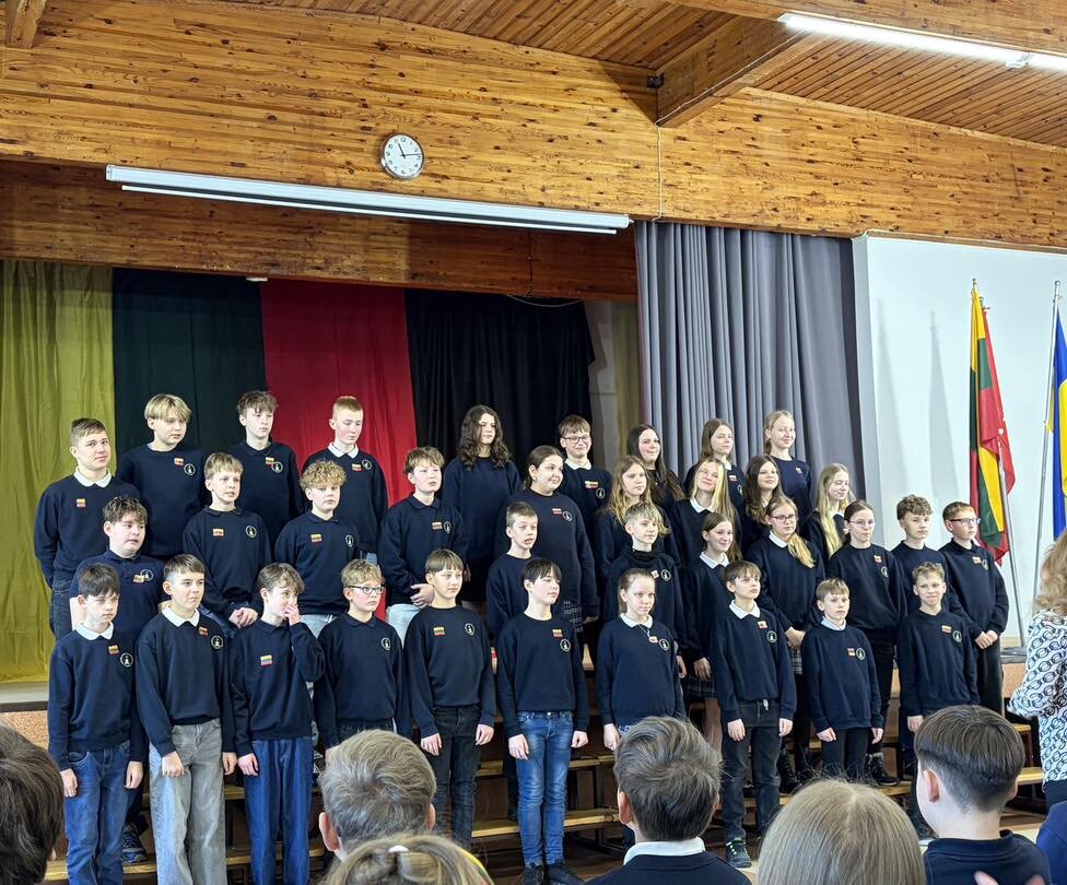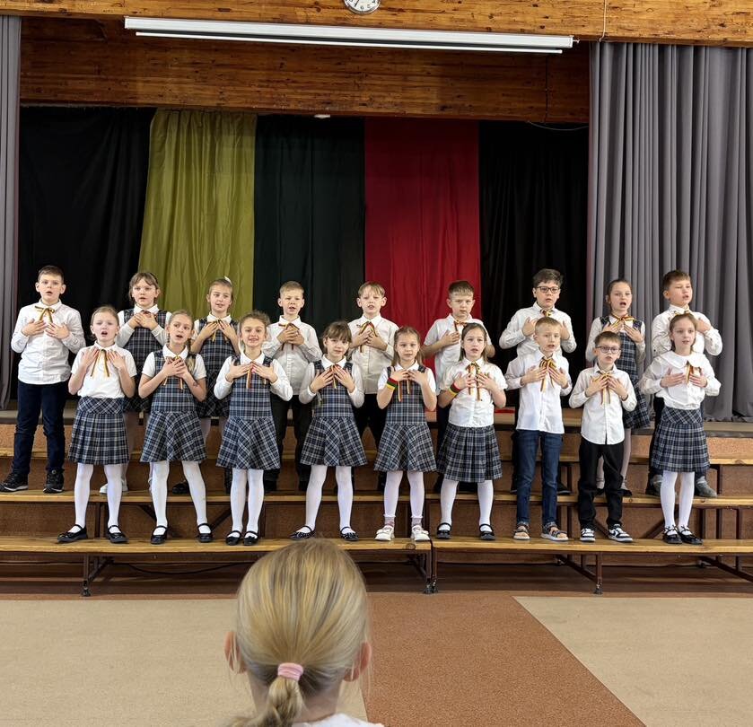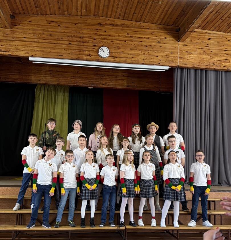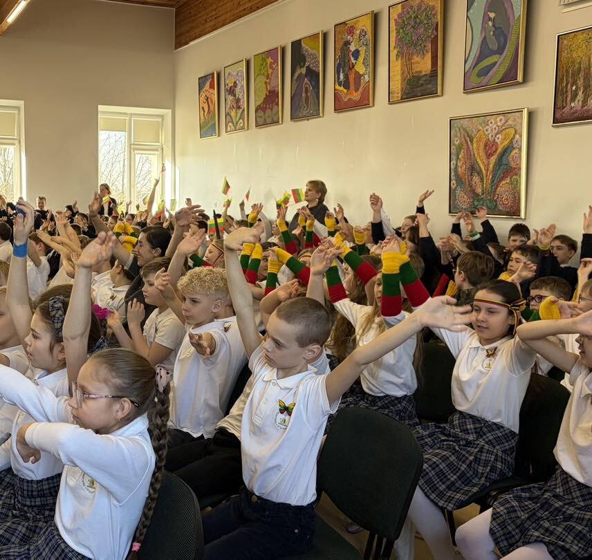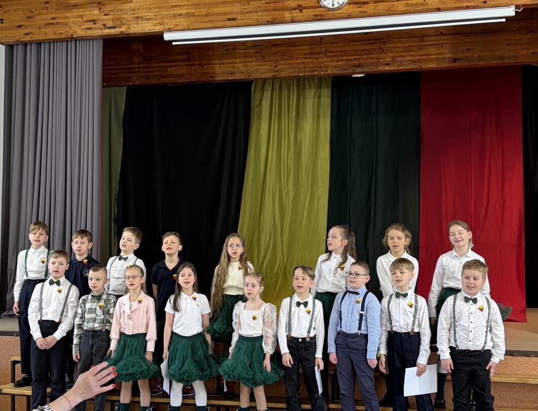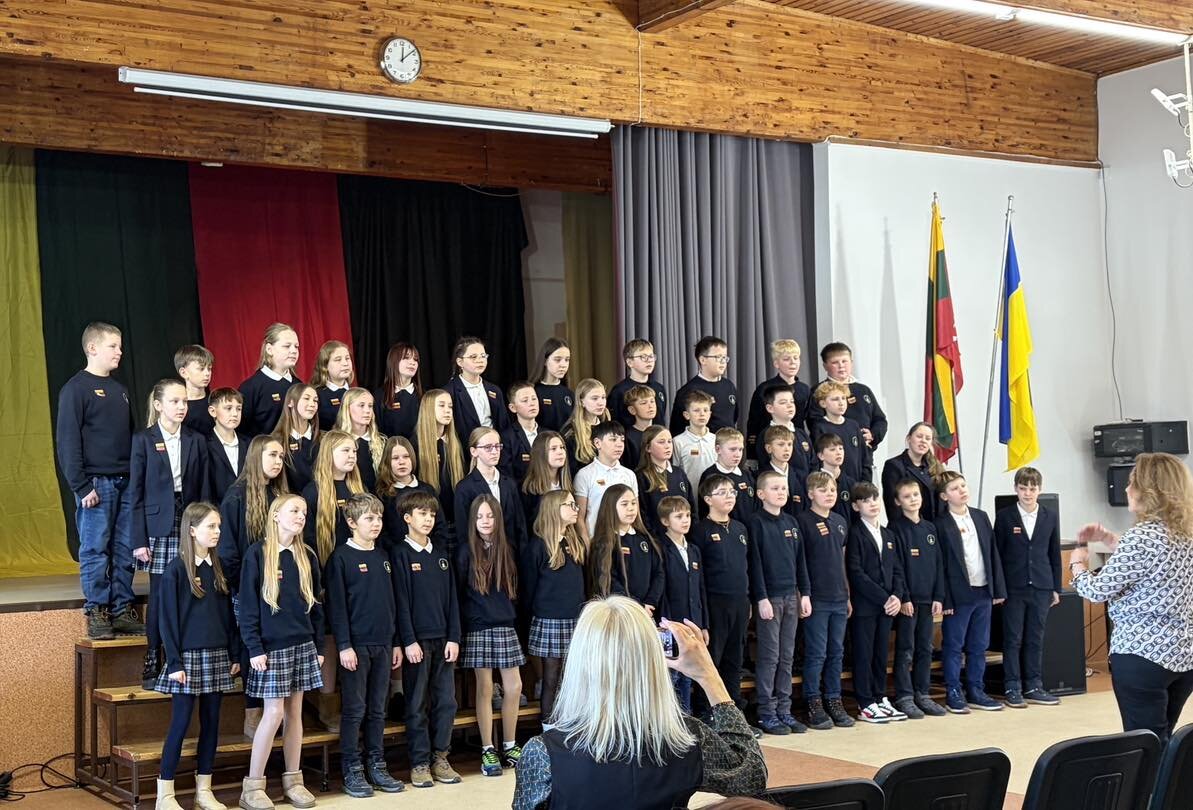 Mokykloje vyko patriotinių dainų festivalis, kuriame dalyvavo visi mokyklos mokiniai. Iš pat ryto pasipuošę ir su šypsenomis veiduose pradinių klasių mokiniai dainavo dainas, skirtas Kovo 11-ajai paminėti.
