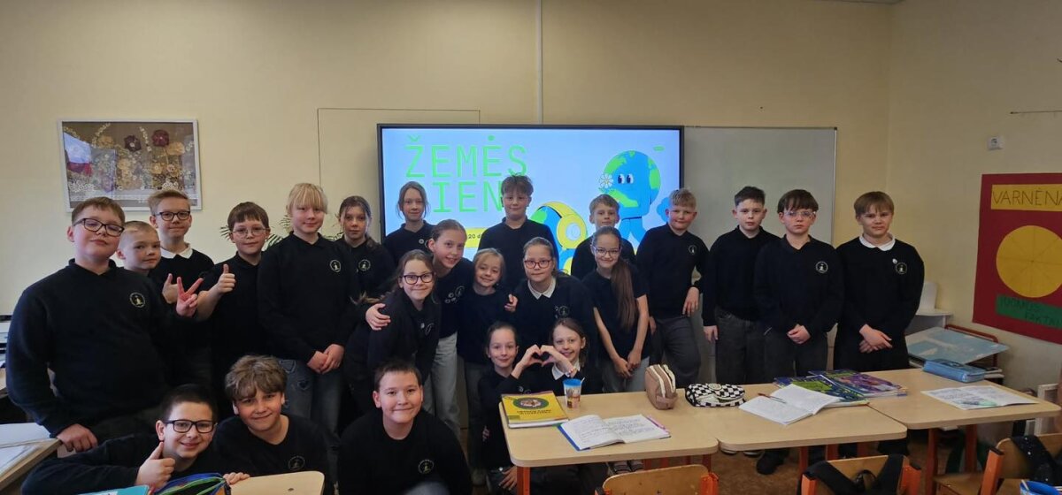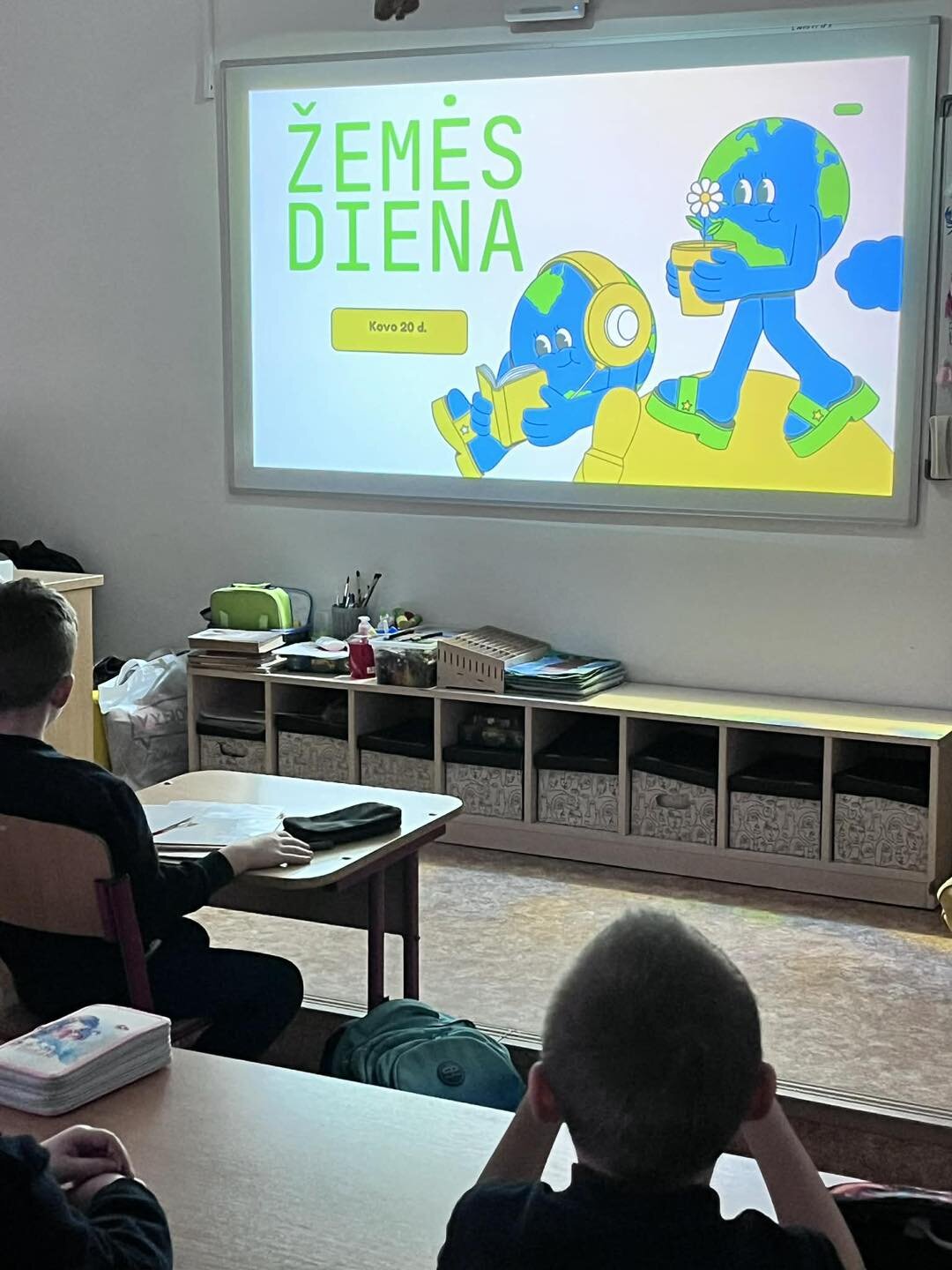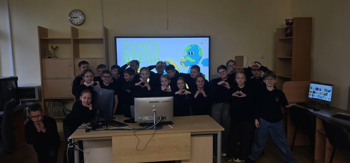 Taip pat mokyklos kieme buvo iškelta Žemės vėliava, o per mokyklos radiją skambėjo speciali laida, skirta Žemės dienai paminėti.