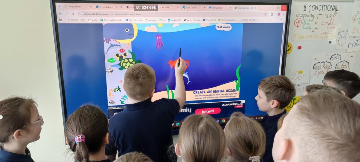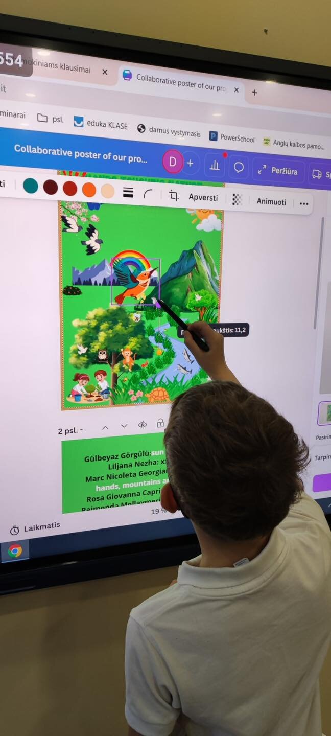 4a klasės mokiniai kartu su mokytojomis Dalia Gvazdauskiene ir Aušra Varkauskaite–Paliuliene pastaruosius 4 mėnesius aktyviai dalyvavo tarptautiniame eTwinning projekte „Hands Touching Nature“. Projekte bendradarbiavo net 27 mokytojai iš įvairių šalių, tokių kaip Graikija, Kroatija ir Turkija bei jų mokiniai.