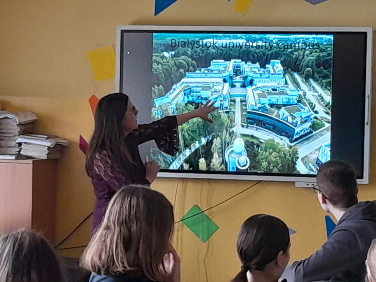 Projekto „Tapatybė“ ašis – pažinti save per kaimyninių šalių kultūrą, bendrą istoriją ir kalbą. Pirmąją viešnagės dieną mokiniai dirbo grupėse: pažindinosi su Balstogės miesto praeitimi, mokėsi lenkiškų, latviškų bei lietuviškų žodžių. Nors pagrindinė bendravimo kalba buvo anglų, gyvas kalbų mainų procesas leido suprasti, kiek daug bendro turime su kaimynais.